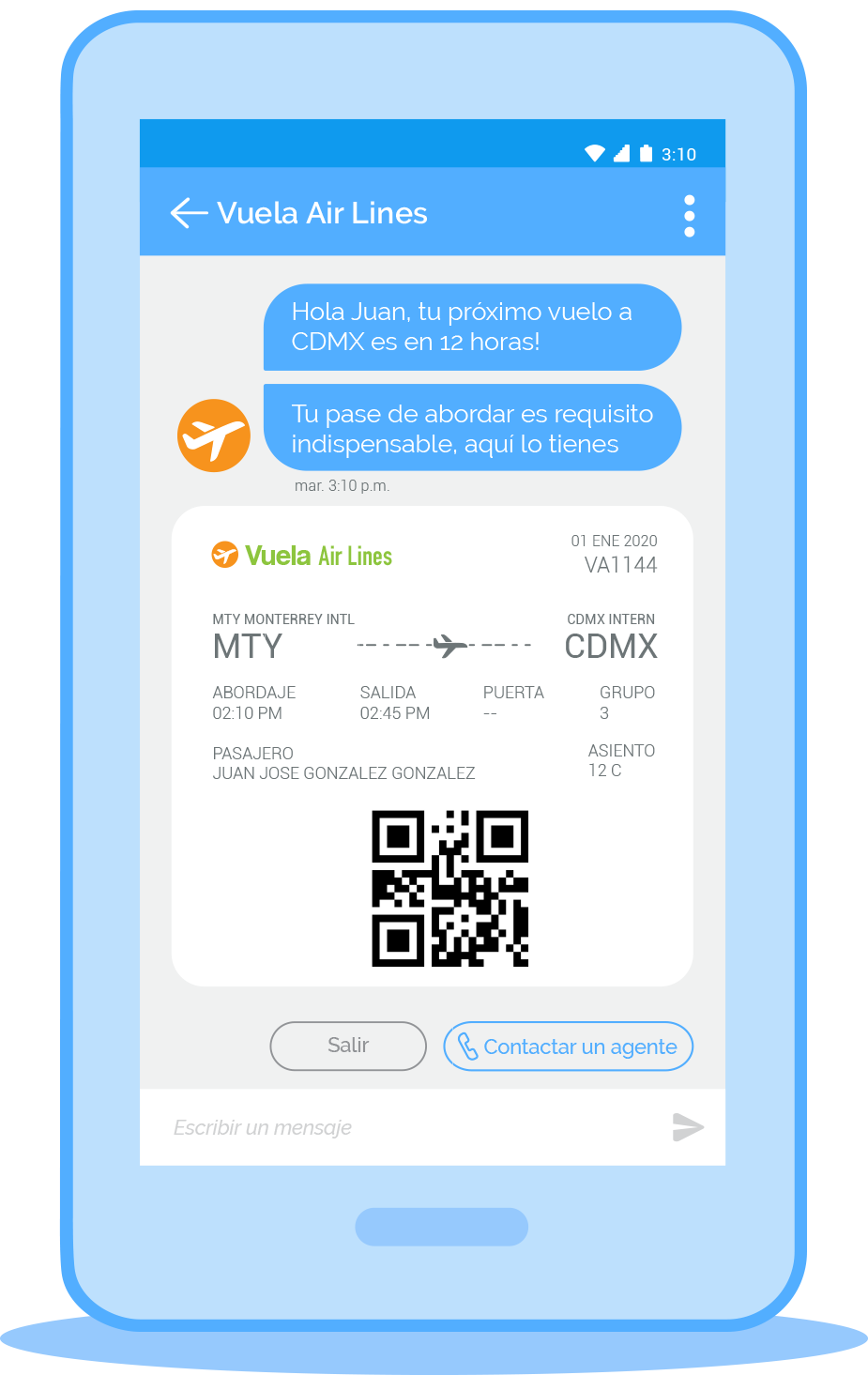 El servicio de mensajería le permite todas las funcionalidades de una aplicación sin hacer login o que el cliente deba descargar una app en especial.